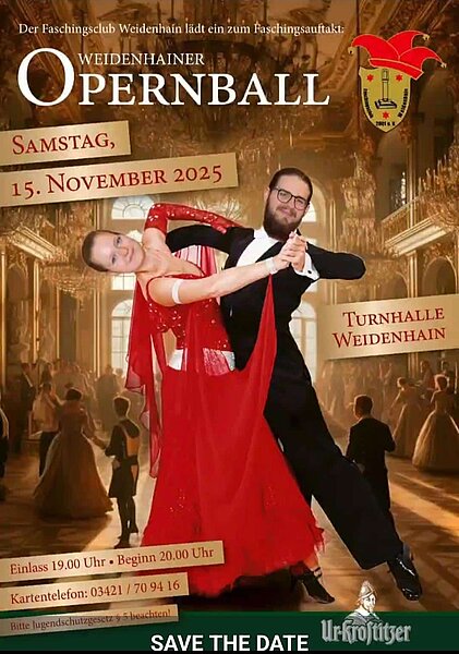 | Samstag, 15.11.2025 | Faschingsauftakt ("Opernball") | Faschingsclub Weidenhain 2001 e.V. | Turnhalle in Weidenhain |