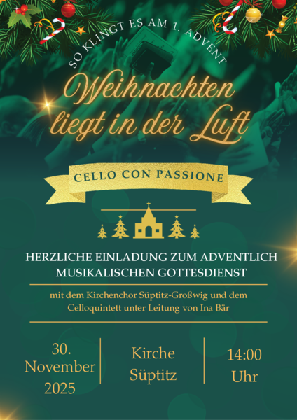 | Sonntag, 30.11.2025 | Musikalischer Gottesdienst | Kirchspiel | Kirche in Süptitz |